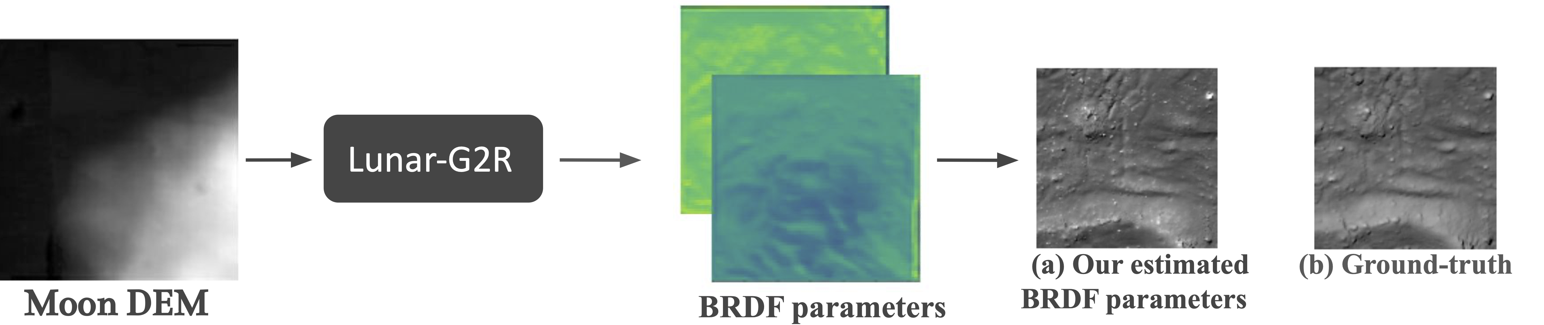 We propose Lunar-G2R, a geometry-to-reflectance learning framework